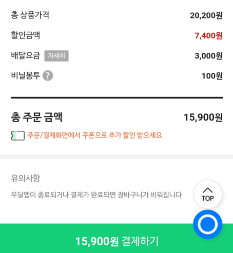 배달요금 3천원하고 비닐봉투 100원 포함하면