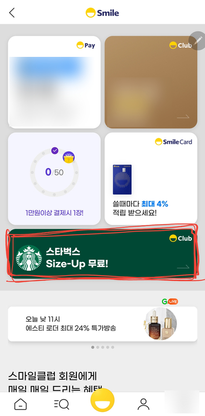 이번에 새로 생긴 스마일클럽 스타벅스 사이즈업 혜택을