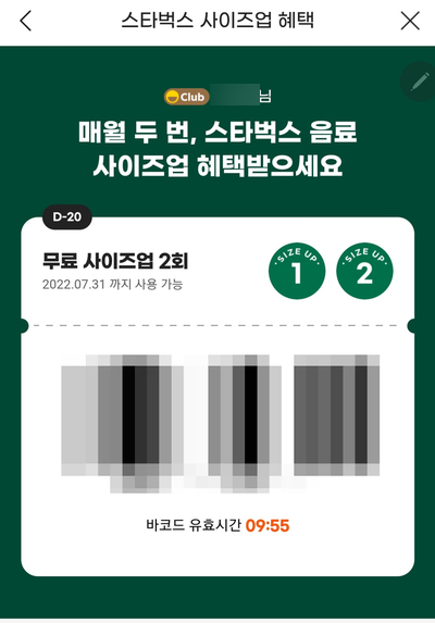 스타벅스 사이즈업 무료 혜택을 눌러주면