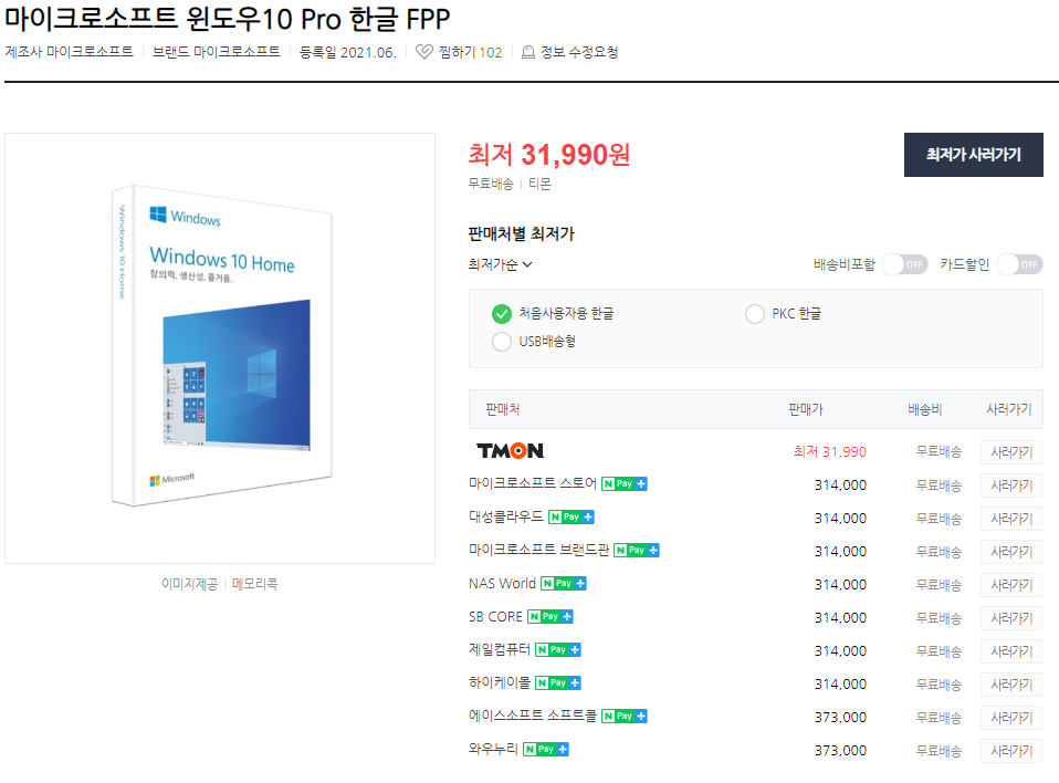 그리고 인터넷에 많이 나오는 초저렴 윈도우10 제품키까지 살펴봤다.