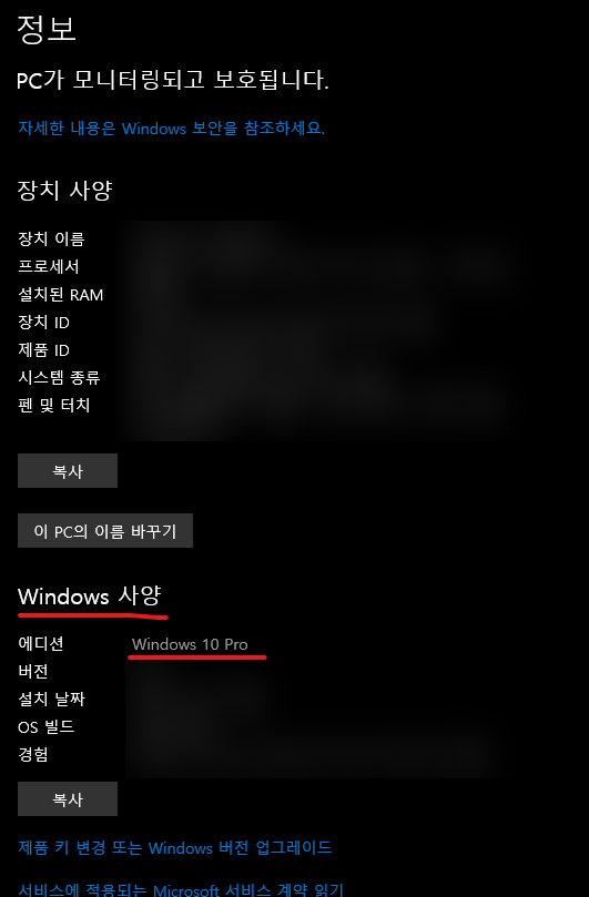 윈도우 버전이 뭔지를 봐두자.