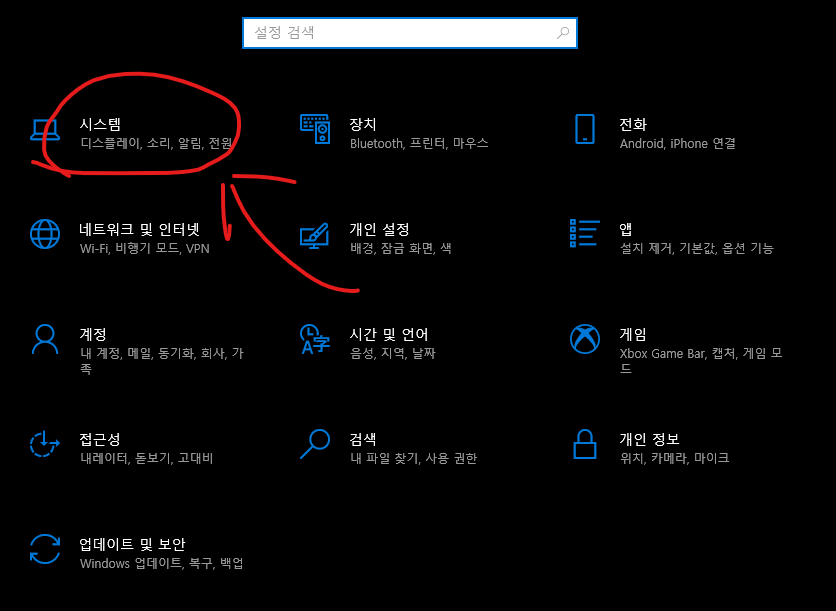 시스템을 눌러주고