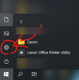 우선 윈도우키 누르고 위에 나오는 설정 버튼을 눌러서