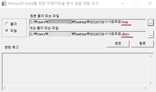 hwp to docx 변환해주는 프로그램을 배포하고 있다.