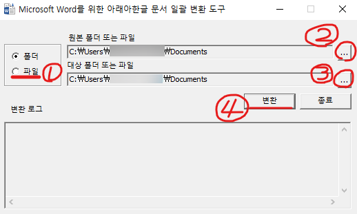 (굳이 설정안해줘도 2번까지만 진행하면 변환되기전 hwp파일이 있는 폴더에 자동으로 지정된다)