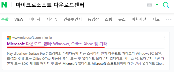 마이크로소프트 다운로드 센터에 일단 들어가야한다.